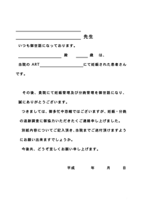 そこで、神奈川県産科婦人科医会は、不妊治療施設と分娩取り扱い施設の双方向の情報交換の一助となるよう、県下の全会員が共通書類を用いてART妊娠の転帰等を正確に記録するための各文書および文書取扱マニュアルを作成しました。
